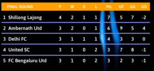 Ka kynhun ka Lajong: Rajat Paul Lyngdoh (GK), Henry Ford Nongneng, Saveme Tariang, Iohborlang Lyngdoh Lyngkhoi (Atlanson Kharmaw 79′), Everbrightson Mylliempdah (Amon Lepcha 64′), Hardy Cliff Nongbri, Ronaldkydon Lyngdoh Nonglait, Figo Syndai (Babysunday Marngar 86′), Sangti Janai Shianglong, Wadajied Kynsai Ryngkhlem (Pynche Tyngkan 86′), Hamedamanbha Wahlang.