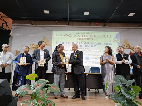 Shillong: Ka Seng ki Nongthohkot Khasi, Khasi Authors’ Society ka la rakhe ia ka lyngkhuh snem ba sawphewsan da ka ba sam khusnam sha ki samla ki ba jopkyrdan ba ha khlieh duh ha ki jingpule bapher bapher kat kum ka jingtbit, nangta la pynlong ruh ia ka lympung mir jingtip bad pyllait ia ki kot thymmai da ki dkhot ka seng. U kongsan ha kata ka sngi rakhe lyngkhuh snem Bah Ricky A J Syngkon, u Dkhot ka Dorbar Thawaiñ Bah ka Ri India ne MP Lok Sabha u la kren bun kiei kiei ki ba iadei bad ka ban kyntiew ia ka thoh ka tar, khamtam ha ka ba iadei bad ka ba pynrung ia ka ktien Khasi ha ka Khyrnit Baphra jong ka Riti Synshar ka Ri India. U Dr. Syngkon u la ban jur halor ka jingdonkam ban pynneh ia ki ktien shnong na kylleng ki thaiñ ha jylla ban pynriewspah ia ka ktien pdeng bad kyntu ruh ban kiar na ka ba pyndonkam da kiwei ki ktien mynder. Ha ka ba sdang la ioh ka jingkren lamphrang da u Khlieh Rangbah ka seng, Dr D R L Nonglait u ba la batai sani ia ka lynti jong ka seng ha ki sawphew snem tam na ka bynta ban kyntiew ia ka thoh ka tar bad ia ka ktien Khasi sha ki kyrdan ba kongsan ha Ri India bad ha satlak pyrthei. La iathuh da u Bah Nonglait ba ka seng ka la pyniat hynñiew tylli ki shnat jong ka seng ha jylla bad lai tylli ha kylleng ka Ri India, kum ha Delhi, Bangalore bad Kolkatta. Nalor kata u Bah Nonglait u la kdew ruh ba ki salonsari ba don ha jylla ruh ki la kynthuip ia ka jingpule ia ka thoh ka pule Khasi ha ki kyrdan ki ba hakliar haduh ka Ph D.