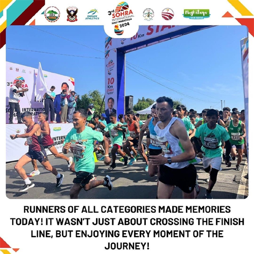 Shillong: Ka tamasa iakob mareh thong ne ka 3rd Sohra International half Marathon ka la long kaba da iphuh iphieng d aka jiniashim bynta ryntih lang da baroh ki nongiashim bynta ba kynthup naduh ki rang ia mareh kiba dei nabar ri, na ka ri bad khamtam lei lei eh na kane ka jylla.