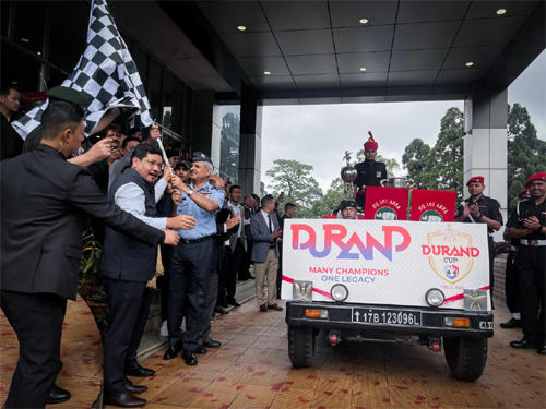 Shillong: Ka jingpyni paidbah ia ka Durand Cup ka la shong shit tain ha State Convention Centre, Shillong ryngkat ka jingdon lang u myntri rangbah ka jylla u Conrad K Sangma, u myntri ka tnad ialehkai u bah Shakliar Warjri, ki heh shipai Air Marshal Suraj Singh, Eastern Air Command, Lieutenant General Sanjay Malik, SM GOC 101 Area; Lieutenant General Mohit Malhotra, Eastern Command Chairman DCOC nalor ki nongialehkai ka jylla.