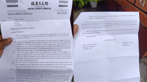 Shillong: Ka Khun Hynniewtrep National Awakening Movement (KHNAM) ka la ong ba ka rukom ai Labour Clearance Certificate ka KHADC sha ki bar jylla tang na kaba pynshisha na ki Pan card, Epic card bad Adhaar, kam pat biang ban khanglad ia ka jingbuhai shnong ki nongwei ha ka kyrteng jong ka jingbylla.