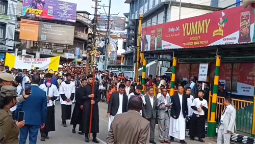 Shillong: Ki Paid Riewngeit ka Balang Katholik mynta ka sngi ka 9 tarik Naiwieng 2025 ki la tuid byllien sha ka jingiaid Proseshon kaba lah long ha nongbah Shillong.