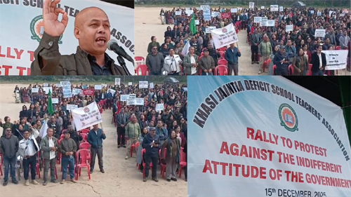 Shillong: Ki nonghikai skul Deficit hapoh ka lama ka Khasi-Jaintia Deficit School Teachers Association (KJDSTA) kila byrthen ba kin mih na kamra klas ki skul sha madan, lada ka sorkar ka bat sah bad kam pyllait noh bad pynkiew ia ka Dearness Allowance (DA) sha ka 43-51 percent hapdeng u Kyllalyngkot, 2026.