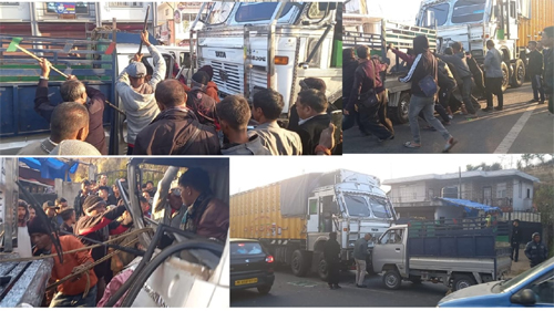 Ar ngut kiba shong ha Maruti Super Carry kila mynsaw jur bad la phlei snam katba ka trok heh ka shu kdor tang u number plate.