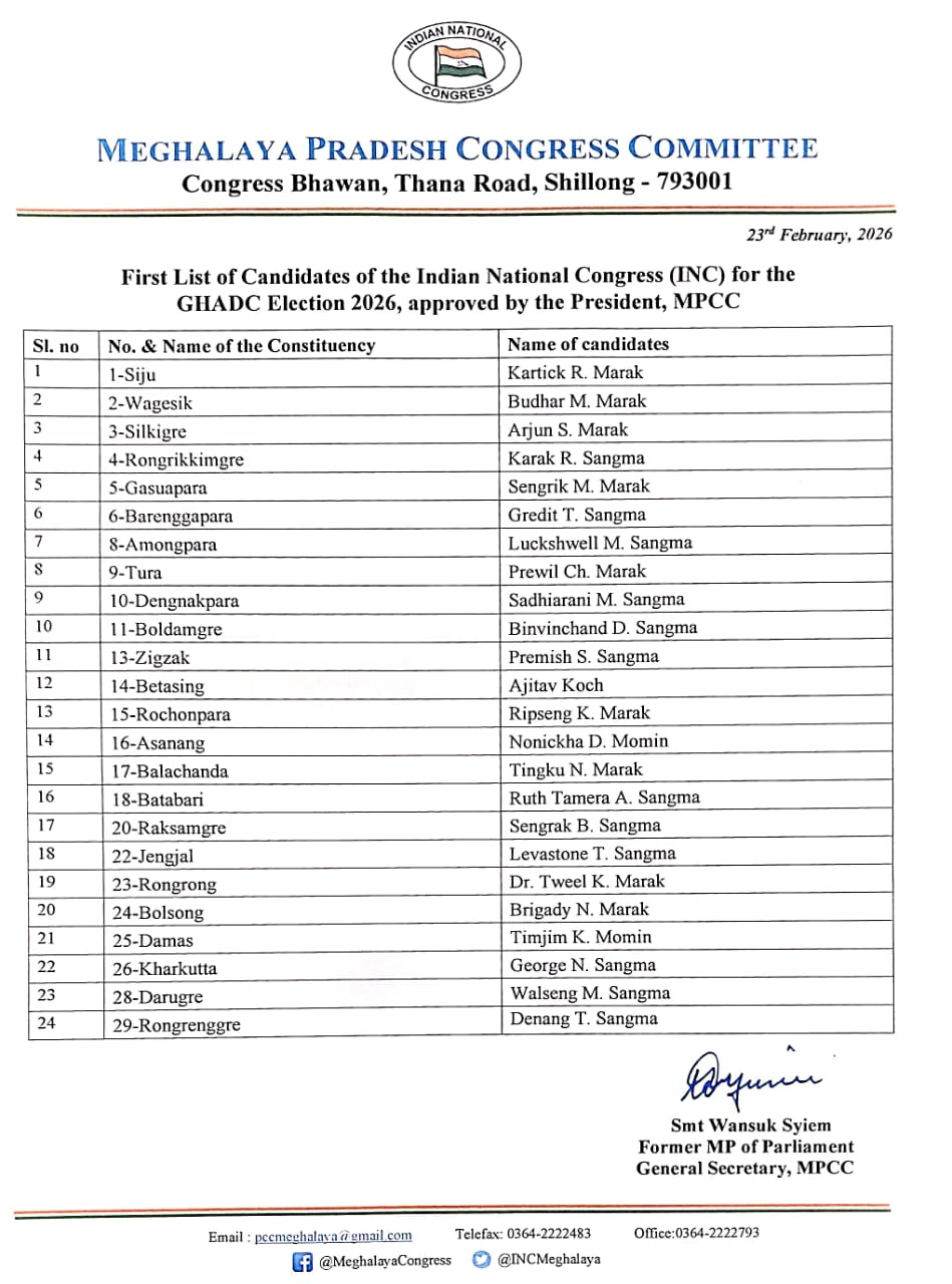 Na JyllaRynsanSain Pyrthei Pyllait ka Congress ia ki kyrtong ban ialeh ia ka MDC sha GHADC By U Nongaiktien February 23, 2026 0 29 Share FacebookTwitterPinterestWhatsApp Must read Sei ka VPP da u Dr. Batskhem Myrboh kum u kyrtong MP March 2, 2026 Pra ka khlieh ka longkmie ba shah syllad ha ka kali March 1, 2026 Shong thait noh 3 tylli ki ‘sew sma K9 March 1, 2026 Ialam shong ‘bos jong ngi, u Conrad ia ki myntri, u nongialam liangpyrshah, bad ki MLA February 28, 2026 U Nongaiktienhttp://unongaiktien.com Share FacebookTwitterPinterestWhatsApp Previous articleT. 29 hajar klur tam ka mang tyngka ka jylla, yn pyllut tam ia ka jingmih sa T. 2 klur tamNext articlePyllait kyrtong MDC ka TMC ban iakhun sha ka GHADC More articles Sei ka VPP da u Dr. Batskhem Myrboh kum u kyrtong MP March 2, 2026 Pra ka khlieh ka longkmie ba shah syllad ha ka kali March 1, 2026 Shong thait noh 3 tylli ki ‘sew sma K9 March 1, 2026 LEAVE A REPLY Cancel reply Comment: Please enter your comment! Name:* Please enter your name here Email:* You have entered an incorrect email address! Please enter your email address here Website: Save my name, email, and website in this browser for the next time I comment. Latest article Sei ka VPP da u Dr. Batskhem Myrboh kum u kyrtong MP March 2, 2026 Pra ka khlieh ka longkmie ba shah syllad ha ka kali March 1, 2026 Shong thait noh 3 tylli ki ‘sew sma K9 March 1, 2026 Ialam shong ‘bos jong ngi, u Conrad ia ki myntri, u nongialam liangpyrshah, bad ki MLA February 28, 2026 Wan pyndem u Area Commander ka HNLC ha Mairang, ioh kem sa 2 ngut na Umsning February 27, 2026